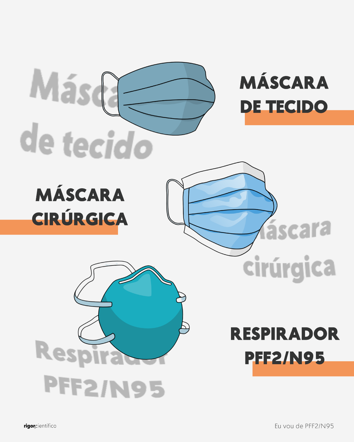 E o que é N95? O respirador mais adequado para uso durante a pandemia é o PFF2, que apresenta eficácia de filtração de 94%. A classificação europeia utiliza de outro sistema de classificação, no qual a N95 representa o respirador com eficácia de filtração mínima de 95%. Portanto, as classificações são similares, sendo consideradas de proteção equivalente. Esses respiradores são descartáveis. Porém, alguns protocolos estão sendo avaliados e orientados para que haja reutilização dos mesmos de forma segura. Deve-se observar se a máscara continua íntegra e, após retirá-la, deixar em ambiente limpo e arejado até o próximo uso, com intervalo de pelo menos 3 dias. Essas máscaras não podem ser lavadas ou borrifadas com álcool, pois pode danificar o filtro.